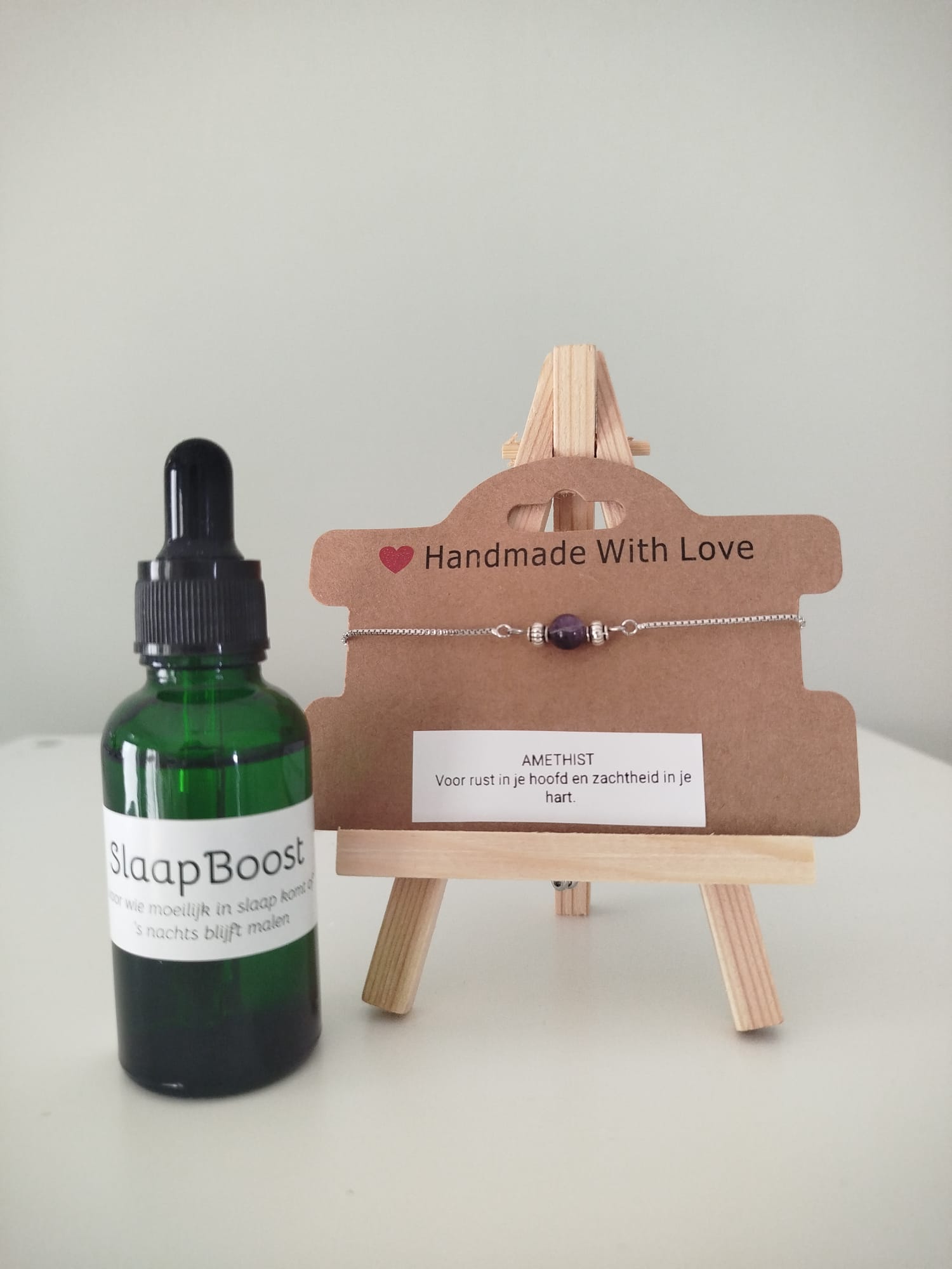 In de DuoBoost zit een Bach bloesem basismix en een edelsteenarmbandje.
