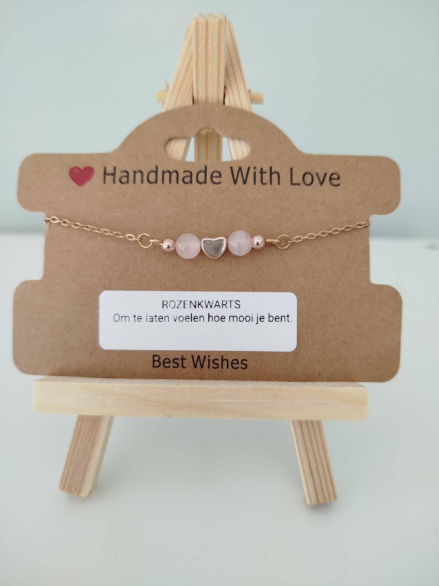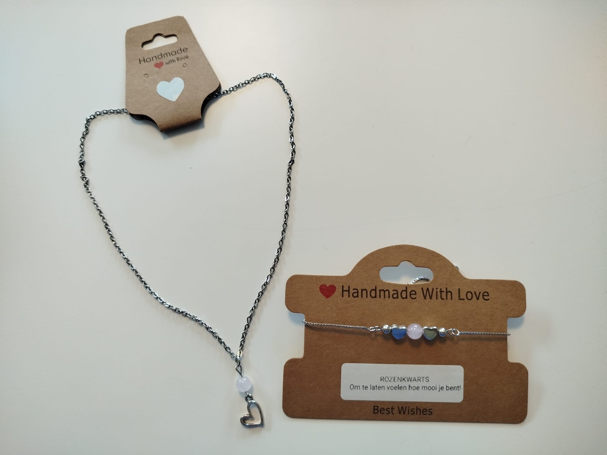 Bij elk sieraad zit een kaartje met een liefdevol zinnetje dat past bij de betekenis van het steentje. Iets kleins, maar vaak precies wat iemand even nodig heeft.